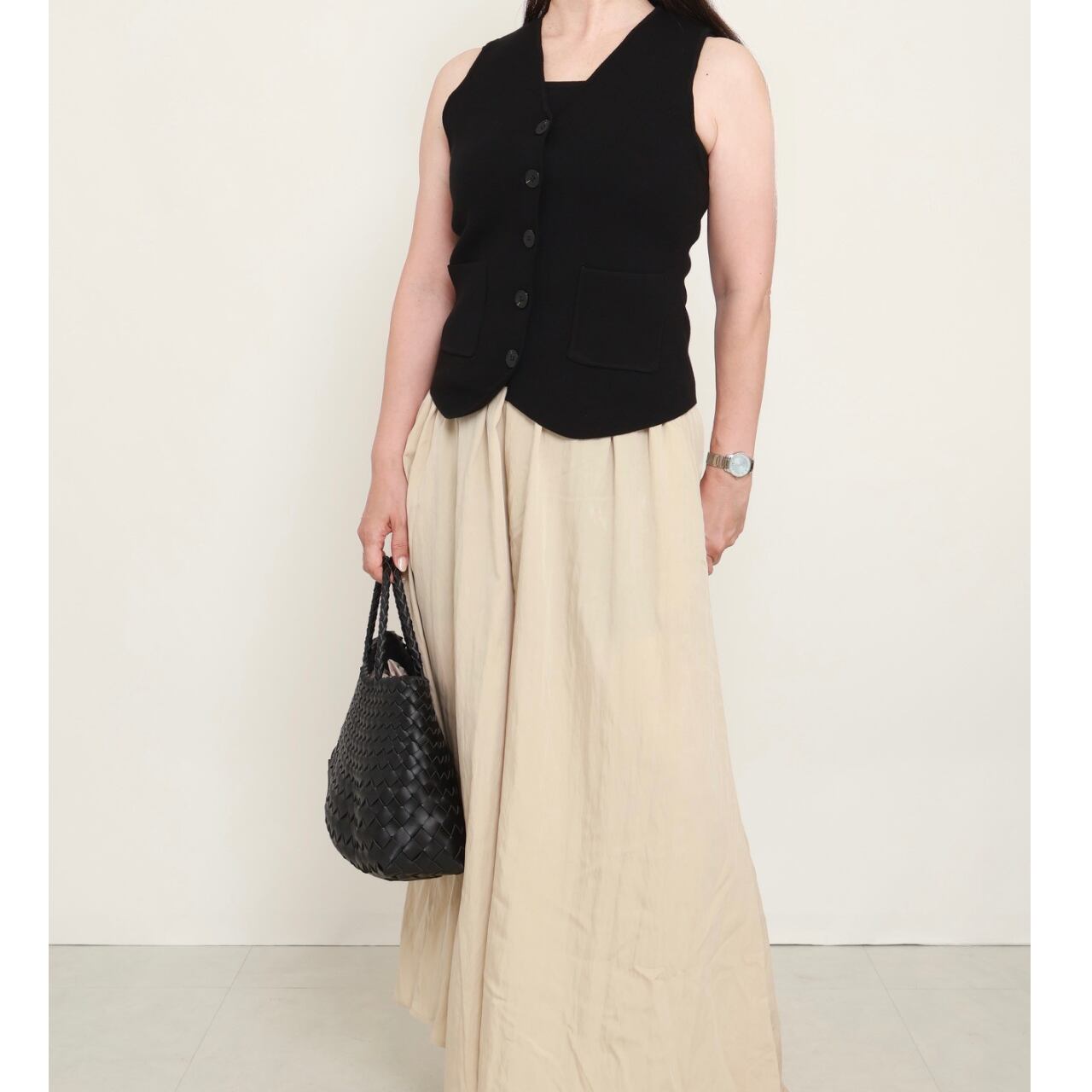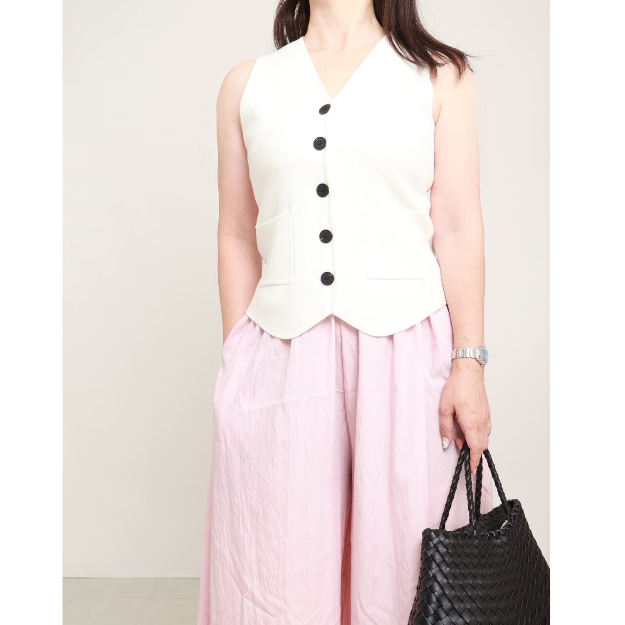 シンプルなニットベストが